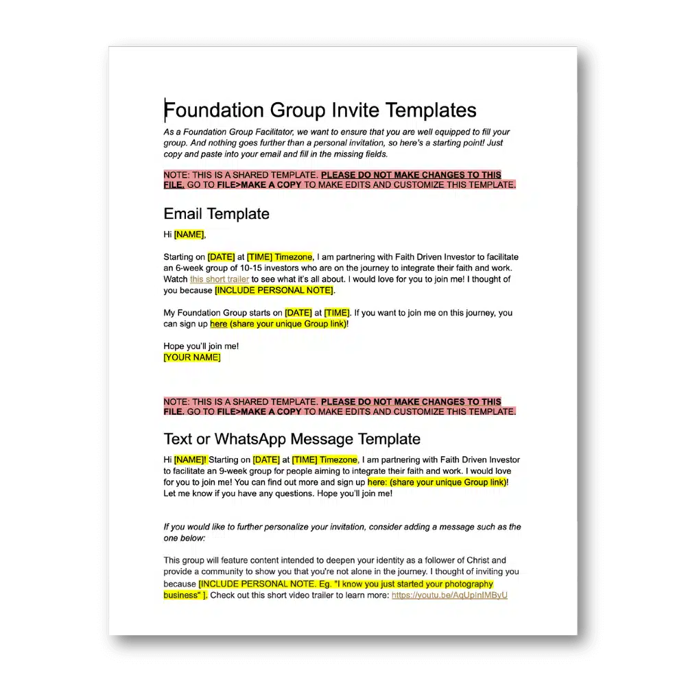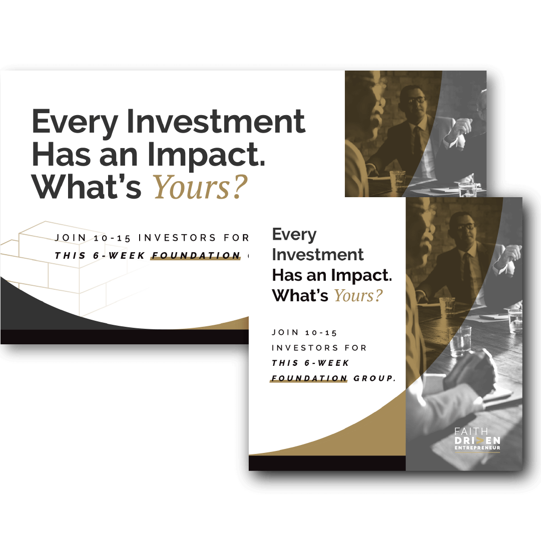 Whether you’re leading a 6-week Foundation Group or a Faith Driven Investor Group meeting monthly, we want to help you spread the word about your group! Scan through the resources below, click to download, and share with your friends and network.